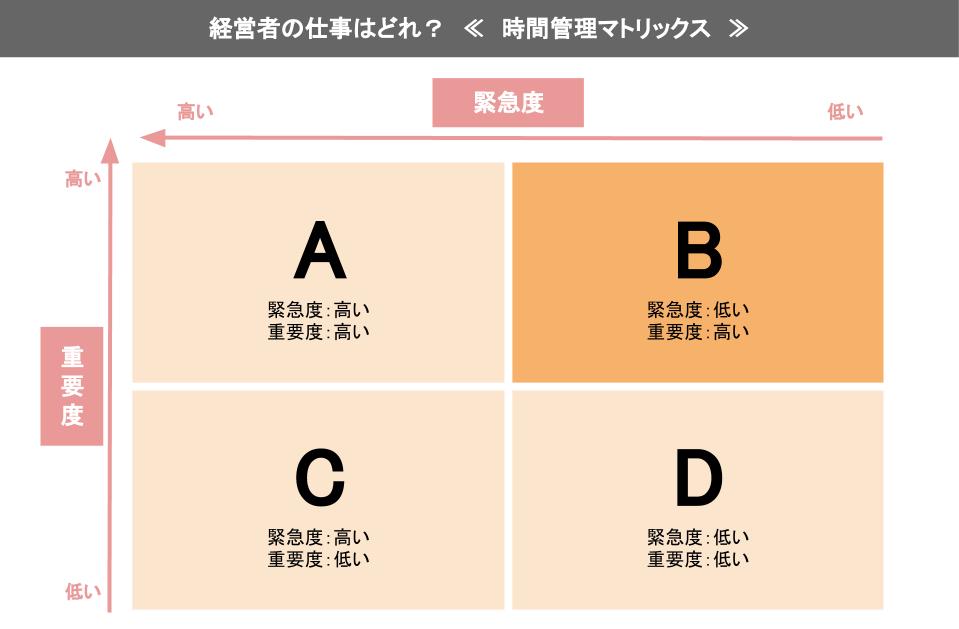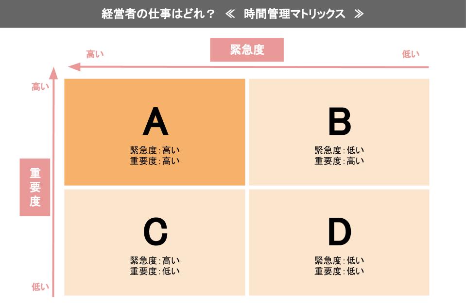 緊急度が高く、重要度が高い仕事は幹部社員に任せられるようにするのが理想です。